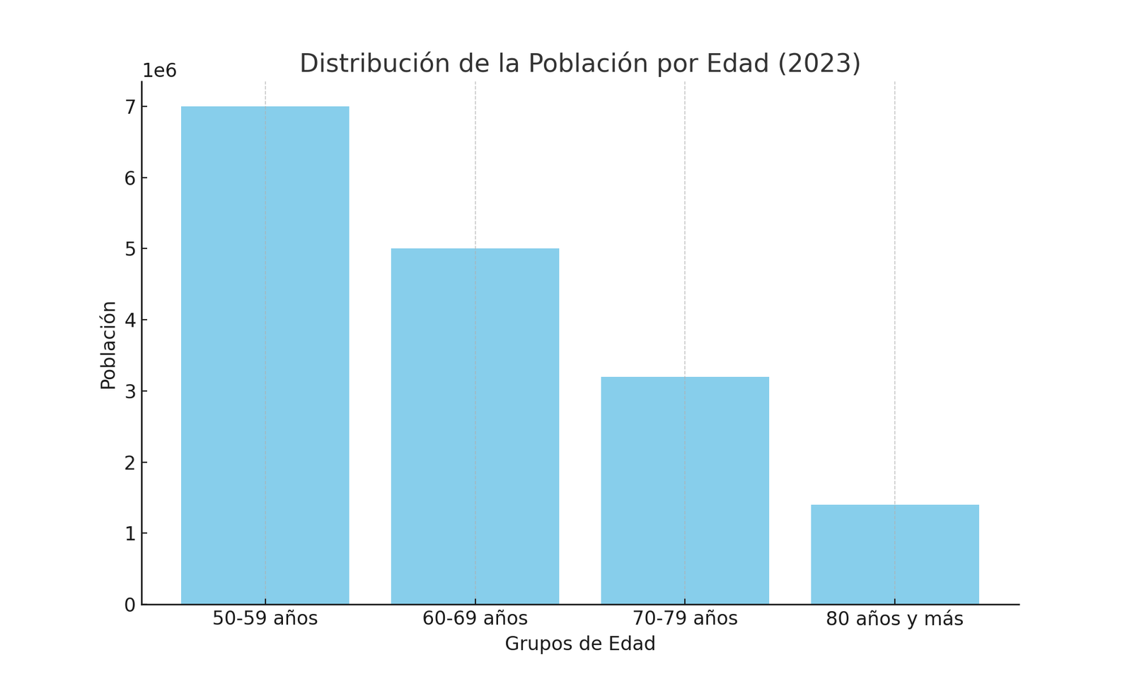 - 70-79 años: Cerca de 3,2 millones (7% de la población total).