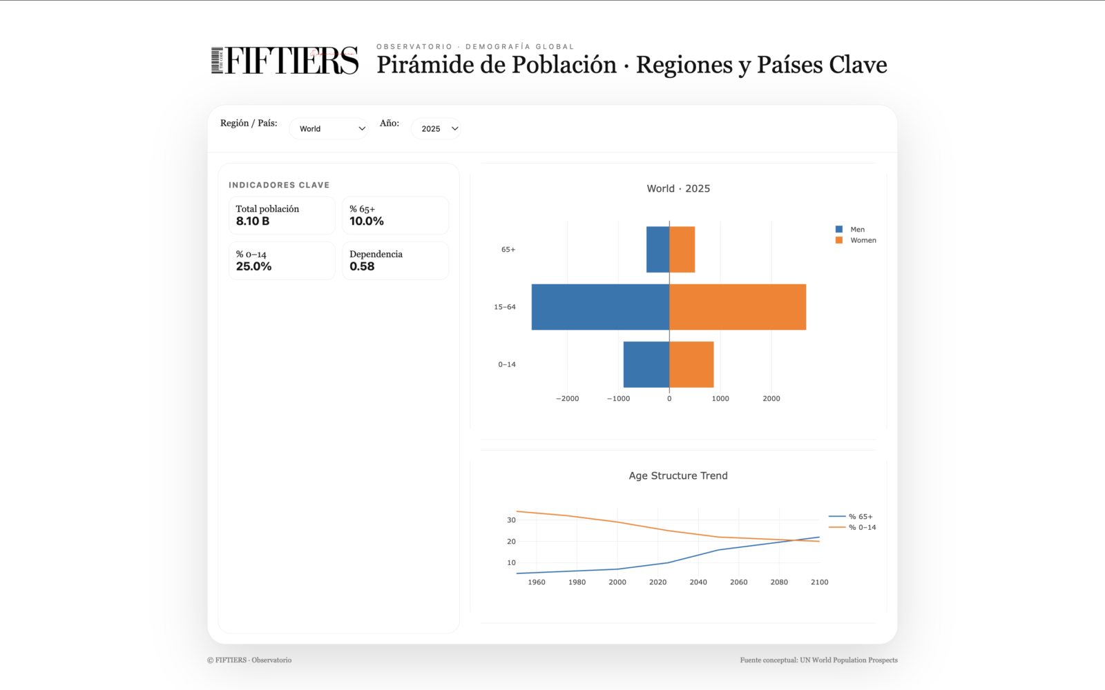 El Observatorio FIFTIERS de Demografía Global analiza estas transformaciones con una mirada comparada, poniendo el foco en regiones y países clave para entender no solo cuántas personas hay, sino cómo viven, trabajan y consumen según su edad.