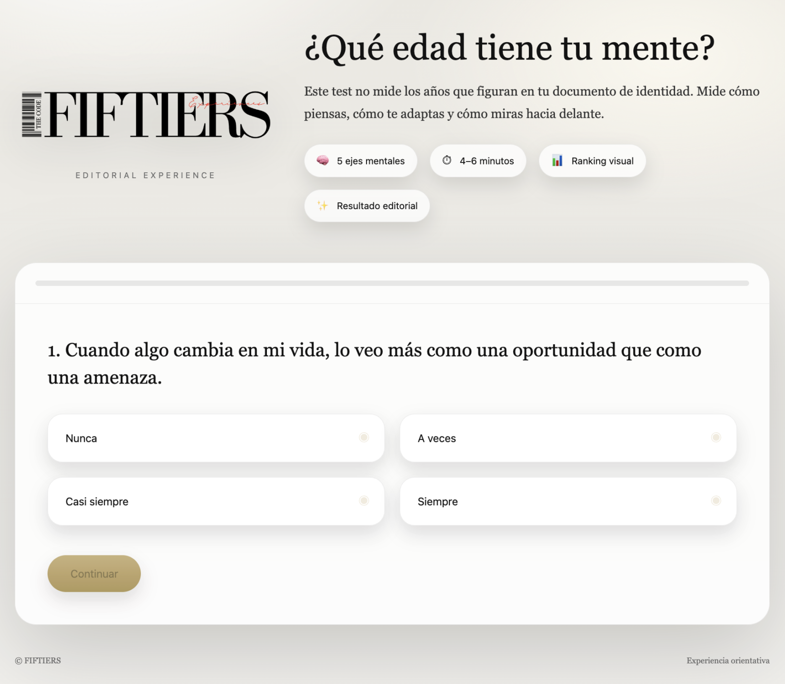 “Queríamos crear una experiencia que invitara a la reflexión, no un juego superficial”, explican desde FIFTIERS. “La edad mental es hoy uno de los mejores indicadores de cómo vamos a vivir los próximos años”.