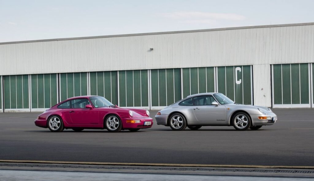 Los paragolpes con fuelle lateral negro son la característica de diseño más llamativa de la Serie G. Permanecieron como un rasgo del 911 durante 16 años hasta que, en 1989, con el estreno del 964 Carrera 4 con tracción total, los paragolpes se remodelaron y se integraron en la línea de carrocería como elementos sólidos. El 964 que aparece en esta imagen, un Carrera RS con tracción trasera, se fabricó en 1991. Con 260 CV y un peso de sólo 1.240 kilogramos era una máquina de conducción pura con alerón trasero de extensión automática, pintado en Ruby Star.