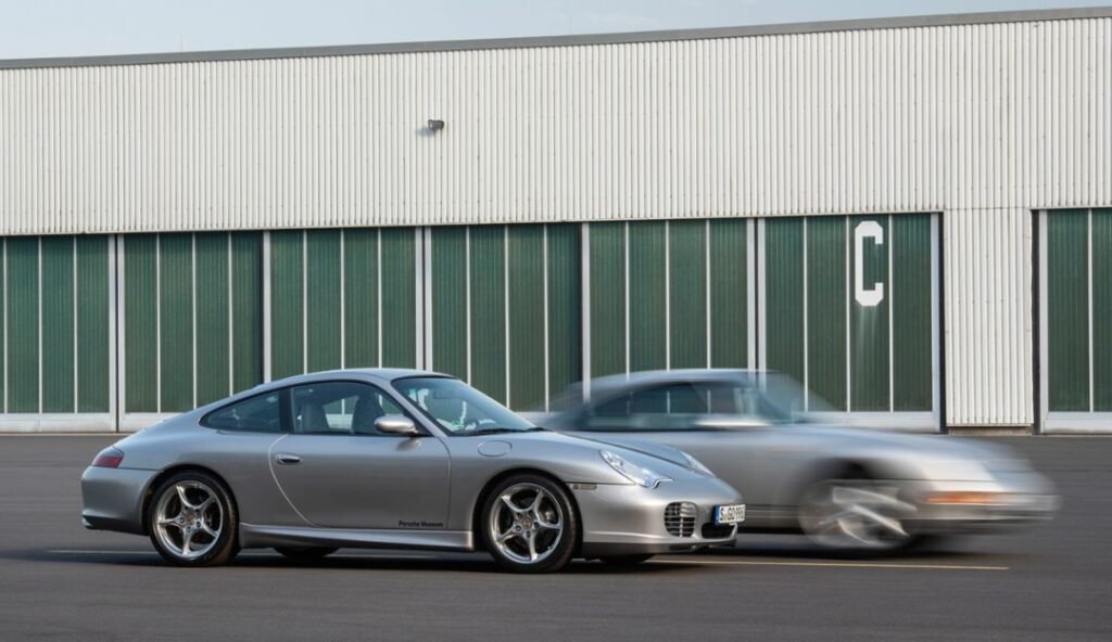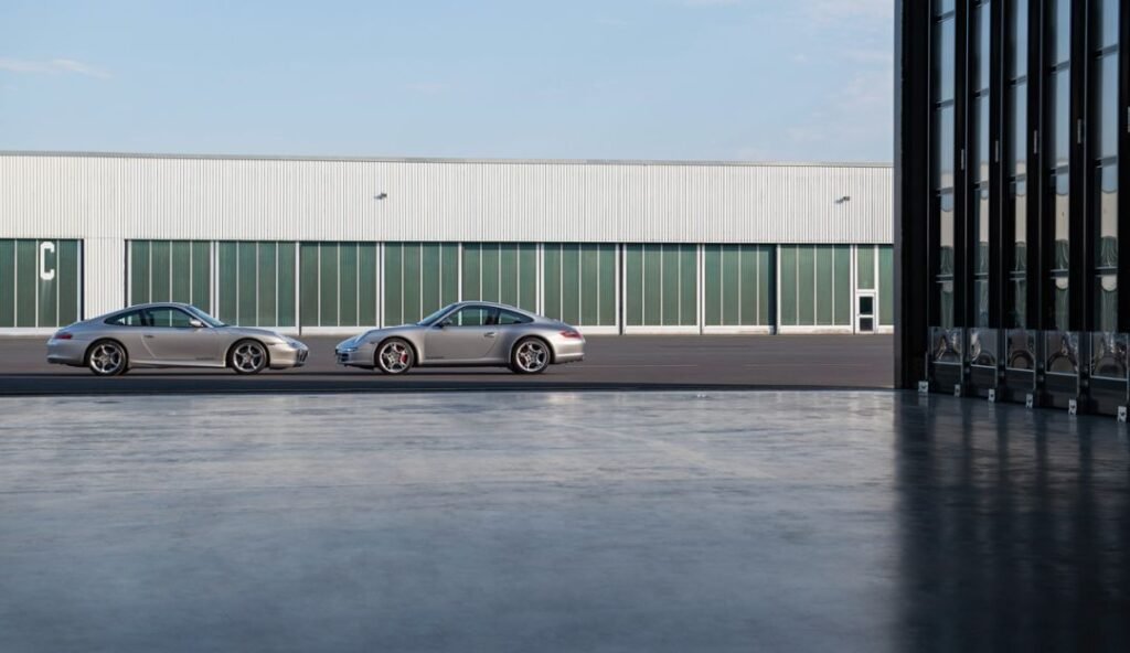 Al pasar del 996 al 997, da la impresión de que se trata de un vehículo completamente nuevo, pero las apariencias engañan: el 997 introducido en 2005 es una especie de súper remodelación del 996. Una comparación de las siluetas que se muestran aquí – el 996 a la izquierda y el 997 a la derecha – lo deja muy claro. Con el 997, Porsche volvió a las formas limpias de las series 964 y G. El 997 de la fotografía que acompaña a este texto es un 911 Carrera 4S con 355 CV, con el mismo tono de pintura del 996 (Plata GT metalizado). El diseño de ambos 911 fue creado bajo la dirección de Harm Lagaaij.